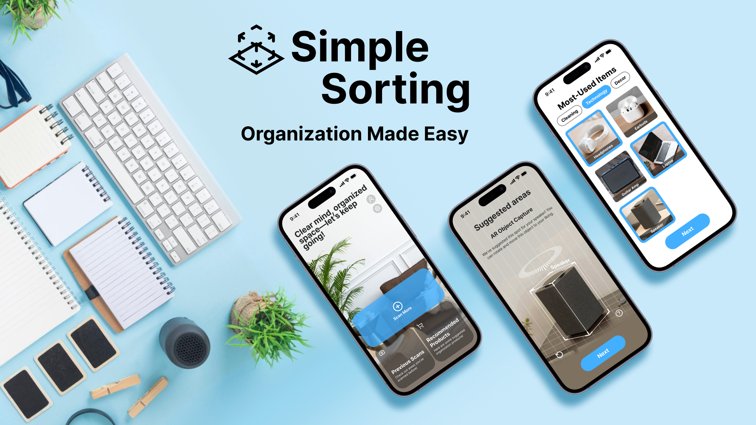 Simple Sorting is an intuitive room-organization app that guides users through decluttering and arranging their space. It starts by helping users remove unnecessary items, then uses a room scan to automatically group belongings by category. The app recommends ideal storage locations—placing large or frequently used items in accessible areas and smaller objects in discreet spots. With clear, step-by-step suggestions, Simple Sorting makes tidying manageable and helps users maintain a clean, functional environment with ease.